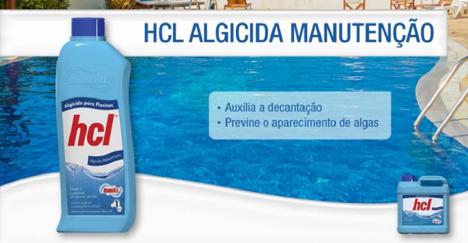 HCL ALGICIDA DE MANUTENÇÃO previne a infestação por algas. HCL ALGICIDA DE MANUTENÇÃO é um composto misto entre o sal poliquaternário de amônia e complexo cúprico, não é volátil sendo efetivo em qualquer faixa de pH. Confere a água da piscina uma transparência total sem resíduos indesejáveis. Utilizado em qualquer tipo de revestimento de piscina. Não turva a água.