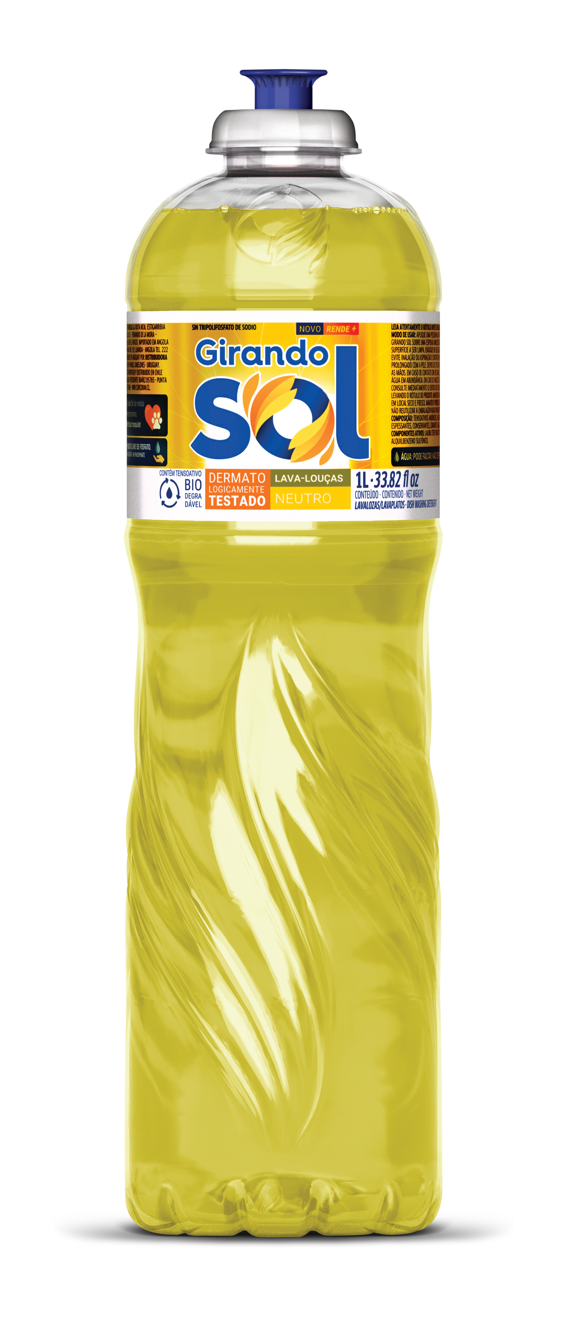 O detergente Girando Sol é eficiente na remoção de gorduras e ainda proporciona economia graças ao seu alto rendimento. Com tensoativos biodegradáveis, além de cuidar de sua louça, não agride o meio ambiente e, por ser dermatologicamente testado, também não agride sua pele.
